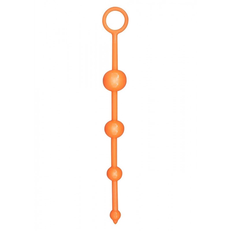 Plug anale dalle forme sferiche, FUNKY BUTT BEADS ORANGE, permette una penetrazione facile e delicata qualle alle sue palline, il suo inserimento è aggevolato dal comodo occhiello.